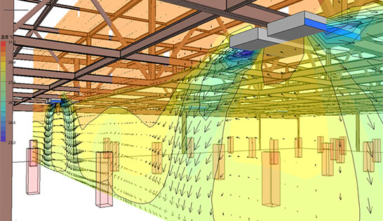 環境シミュレーションにより、これまで経験的になされてきた快適性の実現や環境負荷の低減を、事前検証を駆使して論理的に追求します。