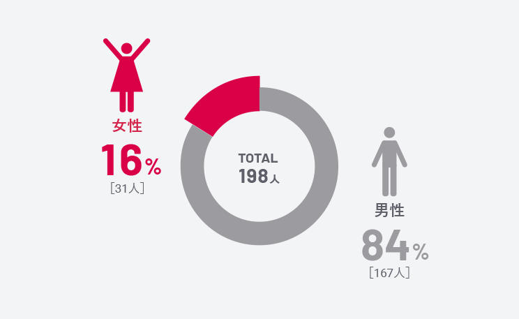 幅広い年代に分散していますが、特に20代以下の若手がボリュームゾーン。ベテランから若手に技術が受け継がれる組織の姿が表れています。