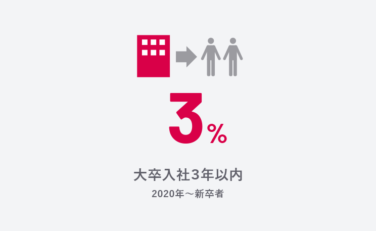 中村組の入社動機で多くの人が挙げるのが「人の魅力」。それを裏付けるように、当社の入社3年以内離職率は、極めて低い数字となっています。