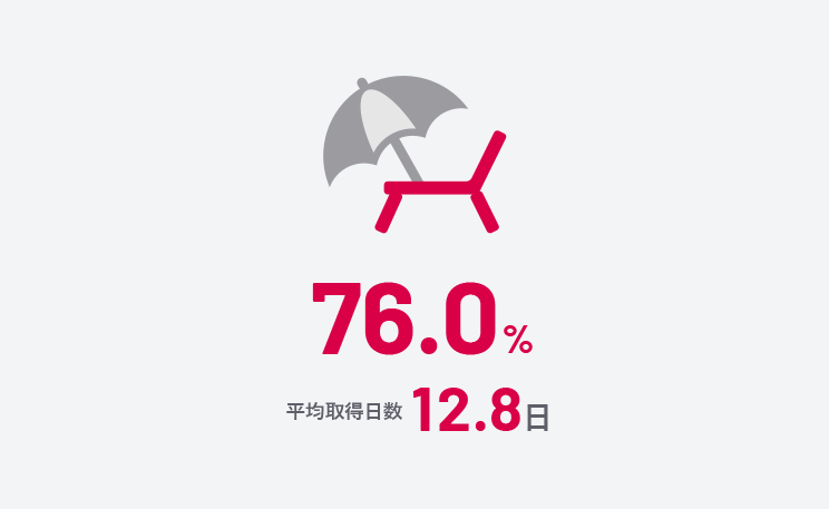 社員の有給休暇取得促進に力を入れている中村組。厚生労働省が発表した2024年度の建設業の平均有休取得率(60.7%)だけでなく、全産業の平均(66.9%)も大きく上回っています。