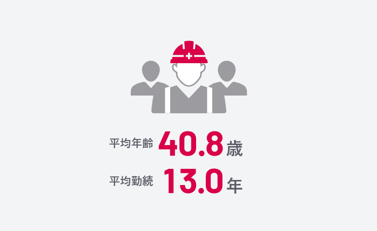 若手社員の層が厚いために、平均年齢は業界水準より若めになっていますが、多くの社員が腰を据えて、定年まで仕事をまっとうしています。