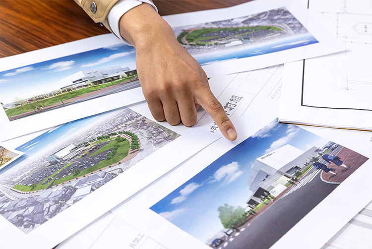 2019年の11月。新都田の約30,000㎡という広大な敷地に、大渕、髙村、高橋の3人は立っていた。そこに建設が予定されているのは、「浜松市市民音楽ホール」という仮称で呼ばれていた、5階建の大型音楽ホール。総工費42億9千万円、工期は1年半を超える一大プロジェクトだ。