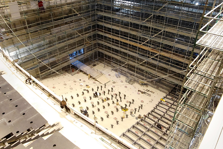 髙村:「これはすごい現場だぞと思い知らされたのが、最初の施工図を描いた時でした。通常、ひとつの施工図を描くのに必要な時間はせいぜい数時間。ところが、ここでは1日半もかかったんです。また、自分の担当工区だけでも、ピーク時には50人前後の職人さんが入るなど、何もかもが圧倒的な現場でした」