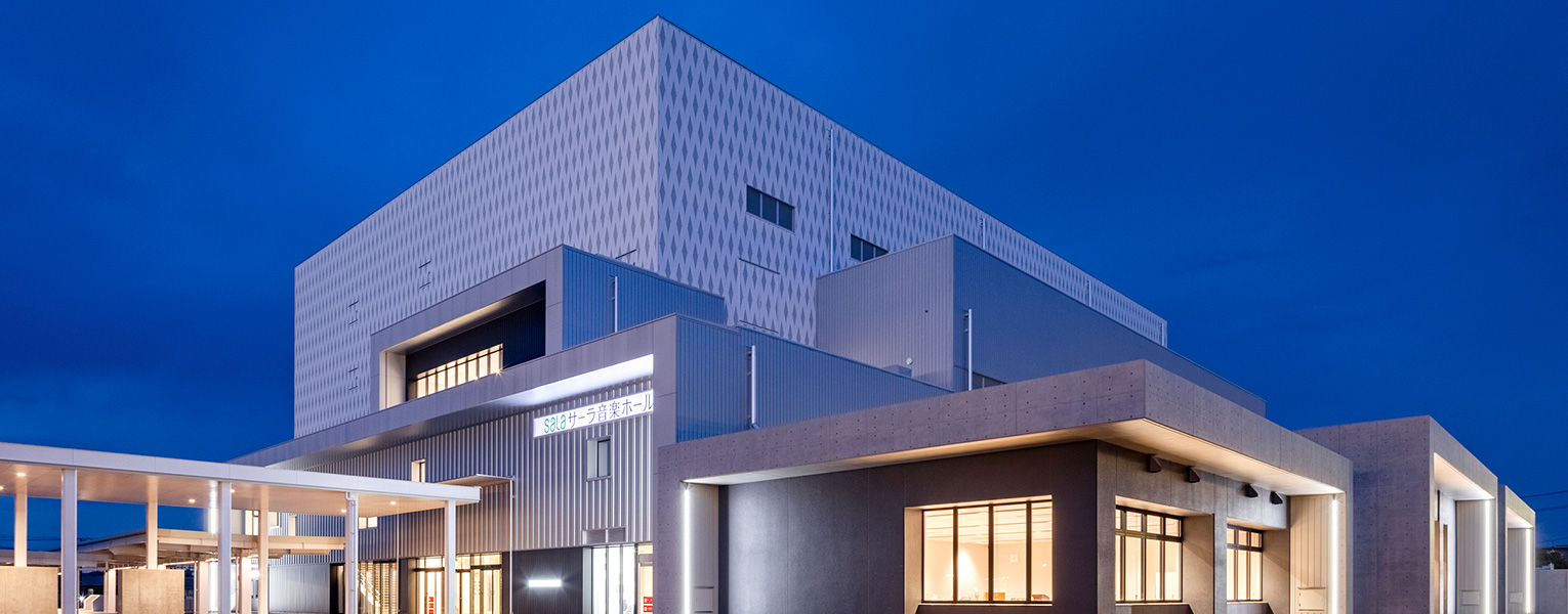 2021年6月、浜松市北区新都田にオープンした「サーラ音楽ホール」。客席数1,406(他に車いす席8)を数え、音楽の都、浜松の次世代の担い手を育成する施設として期待を集めている。JVで行われたこの新築工事を率いた3人が、当時を振り返る。