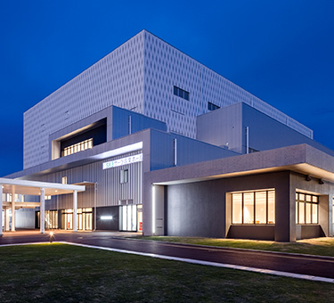 ホール建築面積:3,871.17㎡、ホール延床面積:5,981.26㎡/構造:鉄骨(S)造一部鉄筋コンクリート(RC)造5階建
