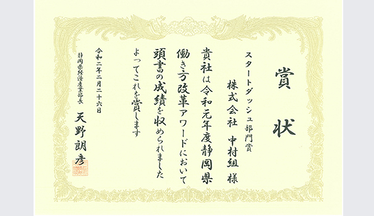 「働き方改革」を推進し、生産性や競争力の向上に取り組んでいる企業として受賞しました。