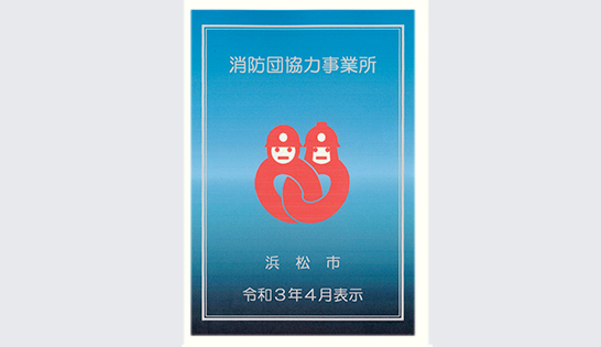 地域の消防団の活動に協力し、地域防災の充実に貢献している企業として、認定されています。