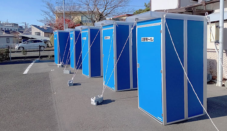 災害により断水・停電した時でも、継続的に清潔なトイレ機能を確保する「組み立て式マンホールトイレ」を社内に用意しています。