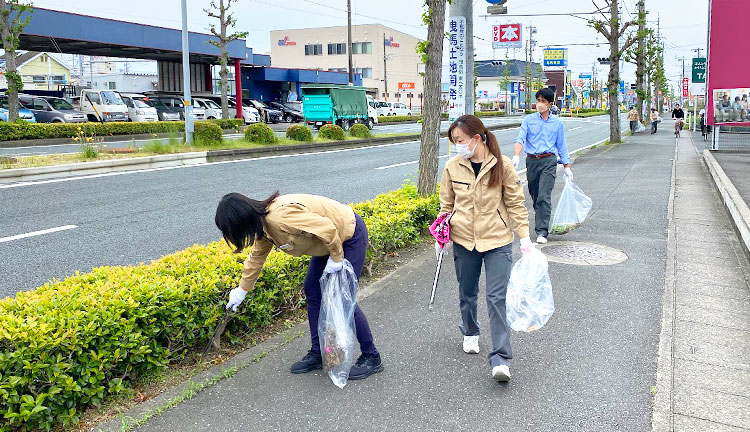 清潔で快適な街づくりのために、「浜松市道路・河川里親制度」や「天竜川クリーン作戦」など地域のボランティア活動に参加しています。